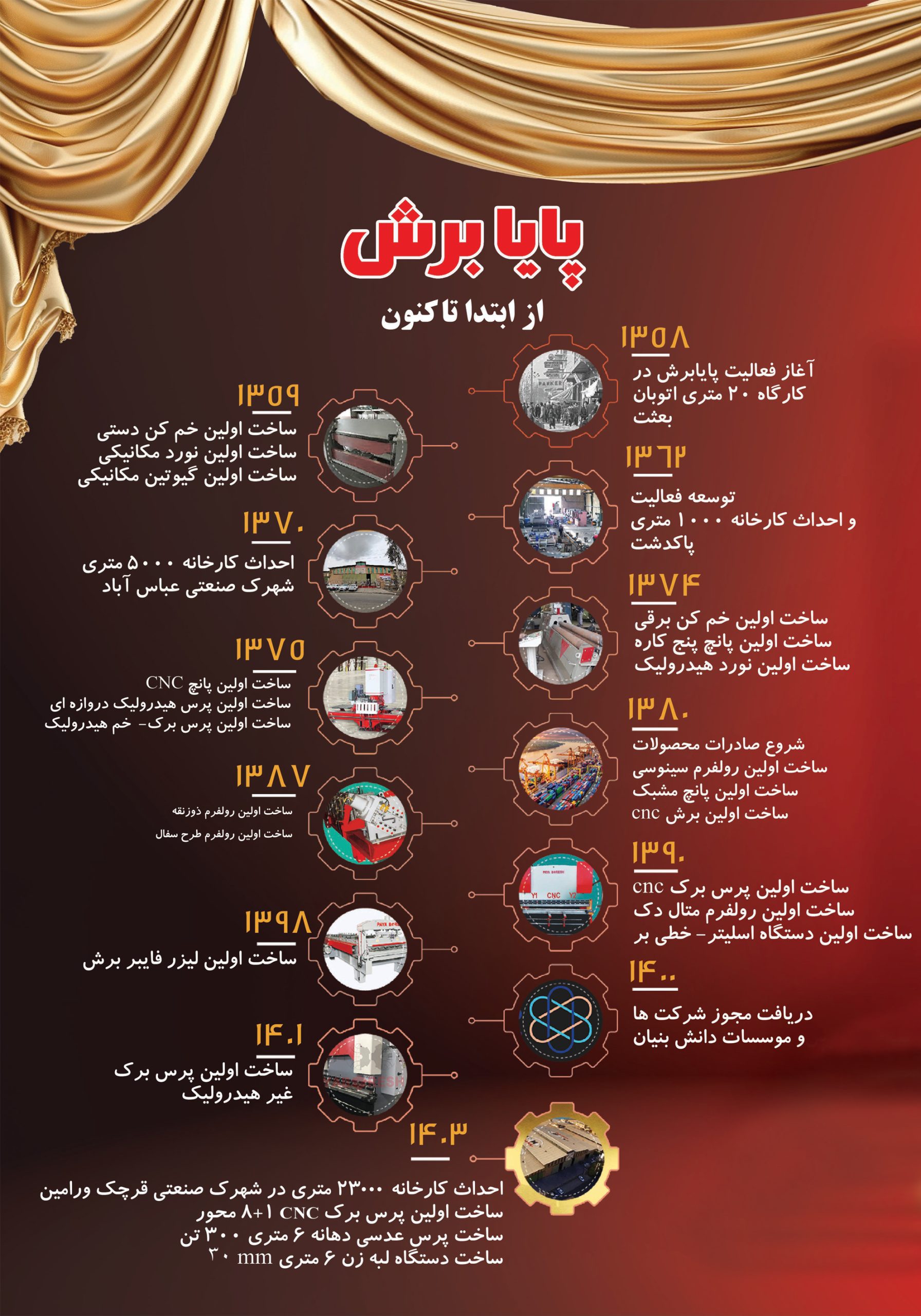 صنایع ماشینسازی پایابرش از سال 1358 تا کنون در زمینه تولید ماشینآلات برش و فرمدهی فلزات در حال فعالیت است. مأموریت پایابرش طراحی، تولید و تأمین ماشینآلات صنعتی پیشرفته برش و فرمدهی، دستگاههای گیوتین، CNC و لیزر مطابق با استانداردهای ملی و بینالمللی در ایران و خاورمیانه میباشد. ما خواهیم توانست برای مشتریان، تامین کنندگان و صاحبان صنایع (داخلی و خارجی) ارزشهای پایدار ایجاد نماییم.