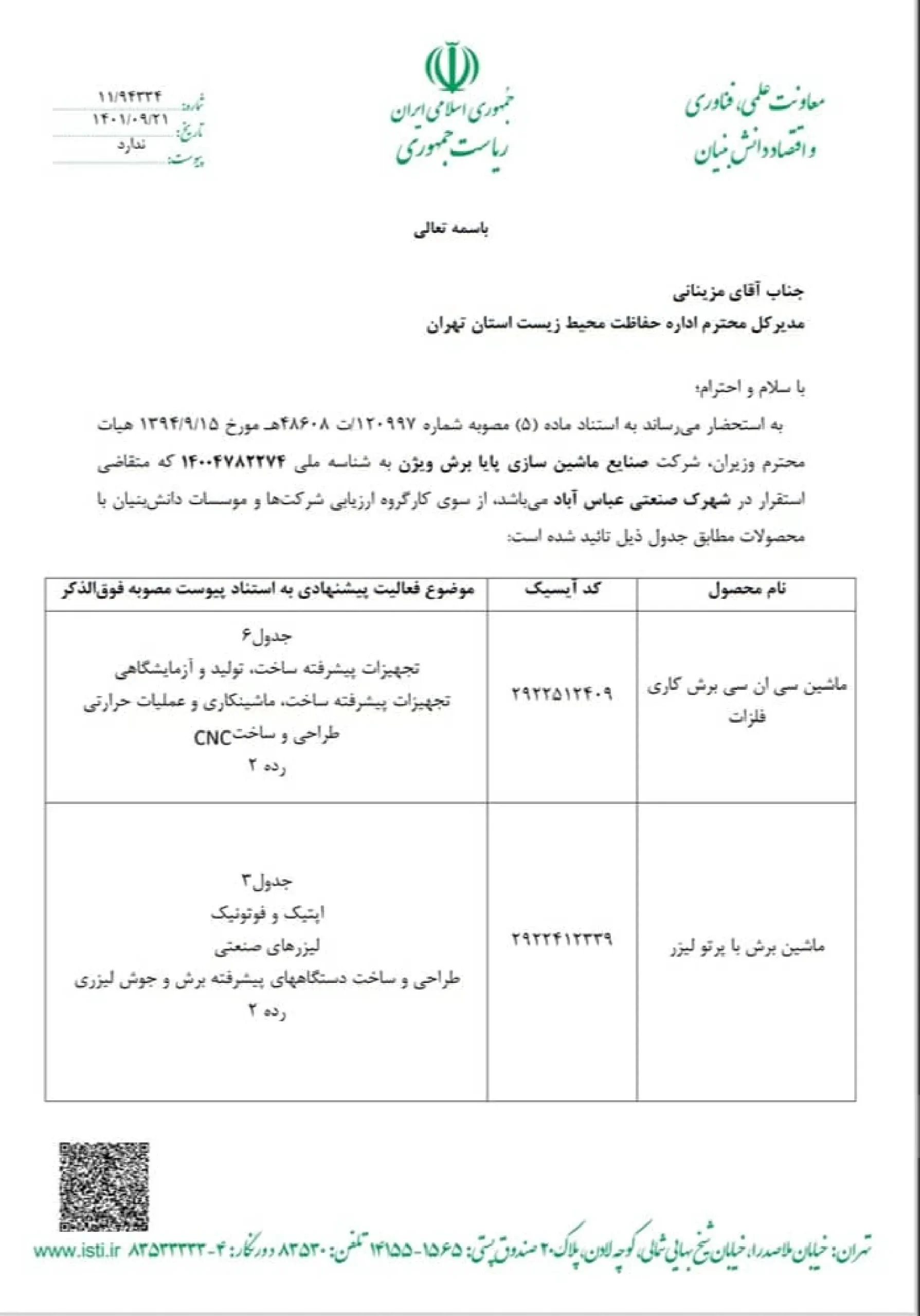 شرکت دانش بنیان صنایع ماشینسازی پایابرش